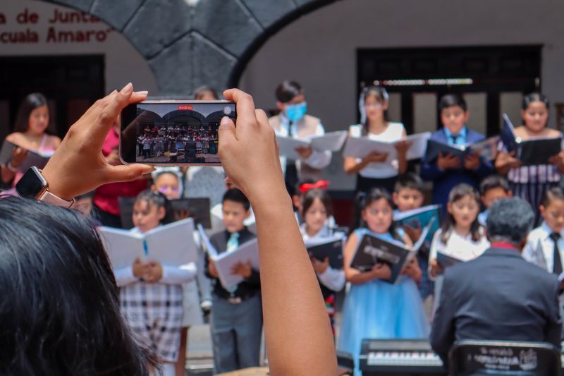 Se llevó a cabo uno de los ensayos del coro infantil. Durante esta significativa jornada, se contó con la presencia de madres y padres de familia, quienes acompañaron con entusiasmo y orgullo a sus hijas e hijos, siendo testigos del compromiso y la alegría que cada niña y niño imprime en este proyecto. El entusiasmo mostrado es, sin duda, reflejo de que cuando existe impulso, acompañamiento y dedicación, el talento florece. Asimismo, se compartió una visión que llena de emoción e inspiración a toda la comunidad: la posibilidad de que este coro infantil realice una gira internacional por países como Ecuador, Perú y Colombia, llevando consigo el talento y la identidad cultural de Melchor Ocampo más allá de nuestras fronteras. Para alcanzar este importante objetivo, autoridades, familias y comunidad acordaron trabajar de manera coordinada, impulsando actividades como conciertos y diversas iniciativas que permitan reunir los recursos necesarios, destacando siempre el compromiso y la participación activa de las familias.